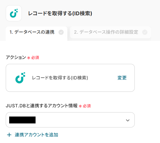 今回は以下のようにレコードを取得する(ID検索)を選択しました。