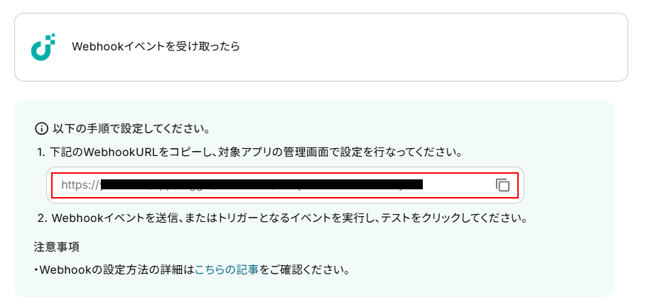 WebhookURLをコピーしたら、以下のリンク先を確認しながら設定を行ってください。
