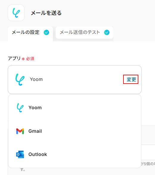 今回はYoom独自のメール機能を利用しますが、変更をクリックすることで別アプリを使用することもできます。