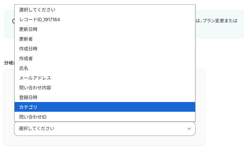 取得した値のプルダウンメニューから、条件に利用したい項目名を選択してください。
