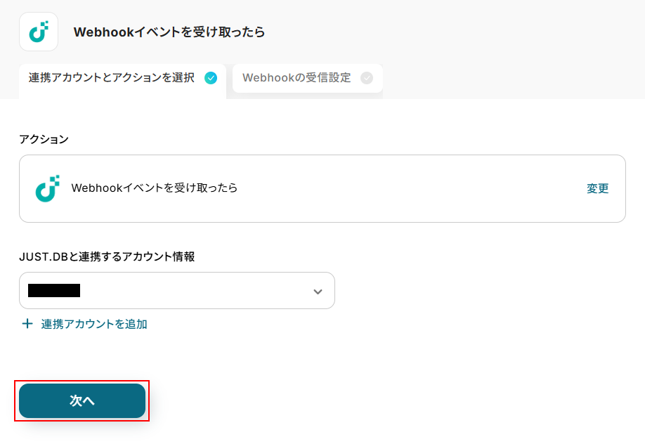 今回ご紹介するテンプレートは、JUST.DBからWebhookイベントを受け取ったら起動します。