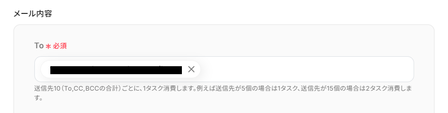 To、件名、本文も含めて入力欄に直接記入する、もしくはプルダウンメニューから選ぶと、入力した値や選択した値が固定値となり、このテンプレートを通して送信する全てのメール設定に適用されますのでご注意ください。