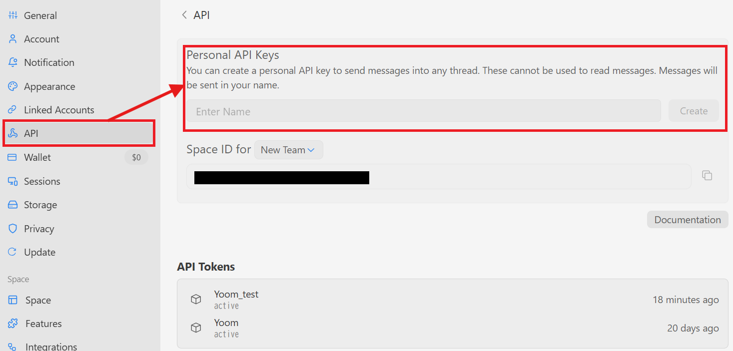 アカウント名は任意のものを、API tokenはAPIキーを発行すると表示されますので、ご確認ください。
