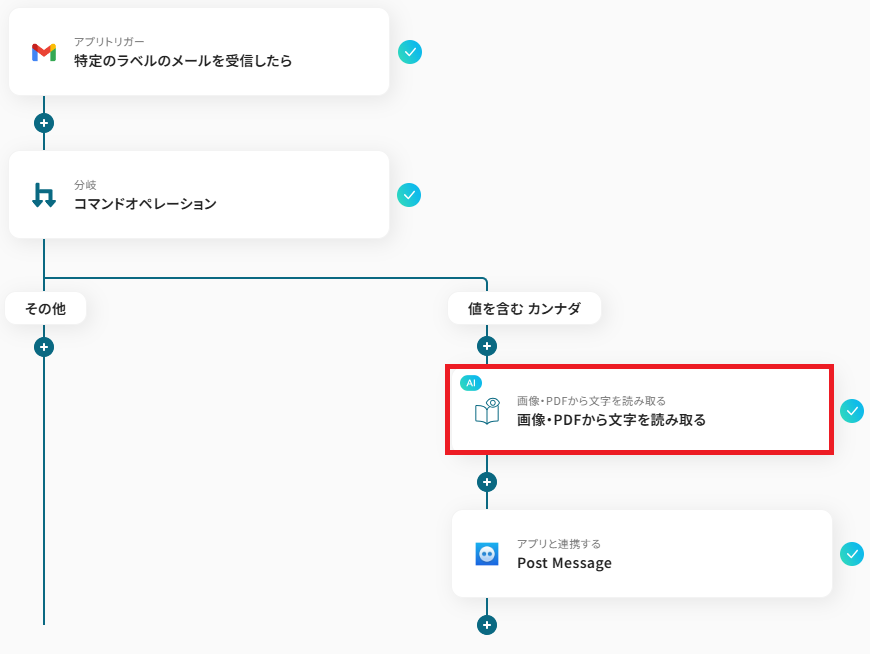 このステップではOCR機能を利用してメールの添付画像を読み取っていきます。 「画像・PDFから文字を読み取る」をクリックしてください。