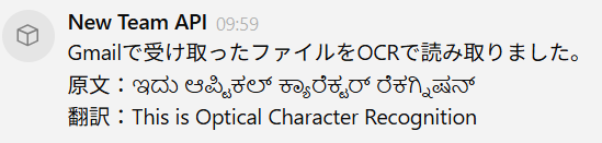 Gmailでカンナダ語のファイルを受信したら、OCRで読み取りNoorでMessageをPostする