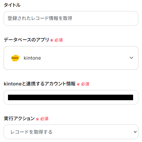 1.続いて、kintoneのレコード情報を取得する設定を行います。下記赤枠をクリックしてください。