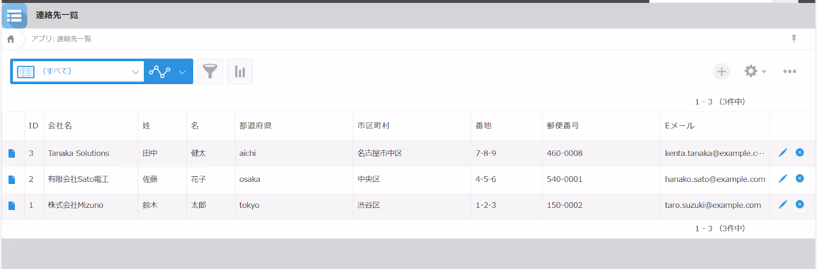 この記事では例として、下図の「連絡先一覧アプリ」を使用します。
