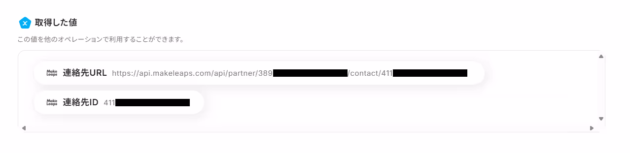 kintoneから取得した情報を用いて、MakeLeapsに連絡先を作成しましょう。