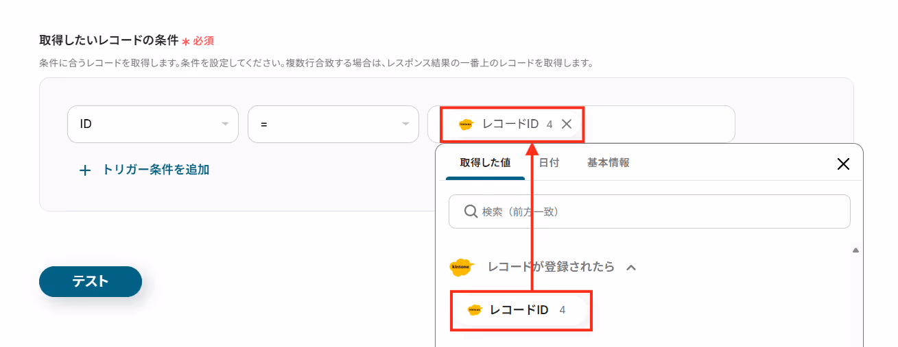 次に、ステップ3で取得したレコードのID情報から、レコードの詳細情報を取得します。