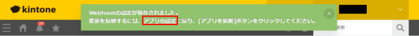 保存を押すと下図の画面が表示されるので、赤枠の「アプリの設定」をクリックしてください。遷移先の画面で、「アプリを更新」をクリックしましょう。