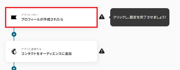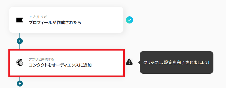 このワークフローを活用すれば、Klaviyoで新しいプロフィールが作成された際に、条件に合致した場合は自動でMailchimpのオーディエンスへコンタクトが追加されるため、こうした課題をスムーズに解消できます。MailchimpとKlaviyo間のデータ連携を自動化し、常に最新のリストを維持することが可能です。