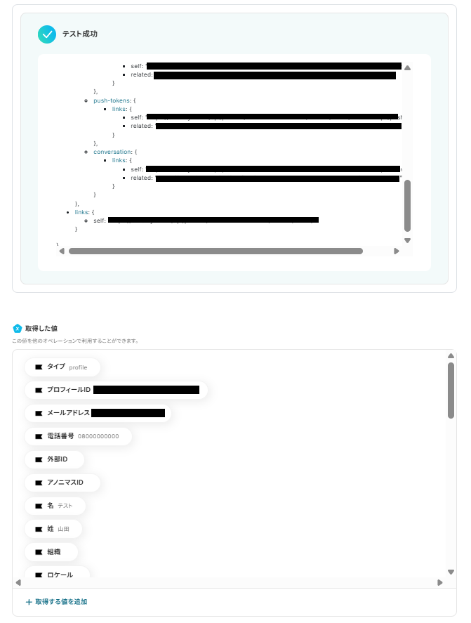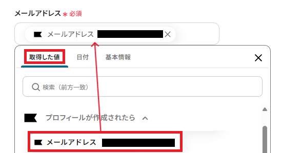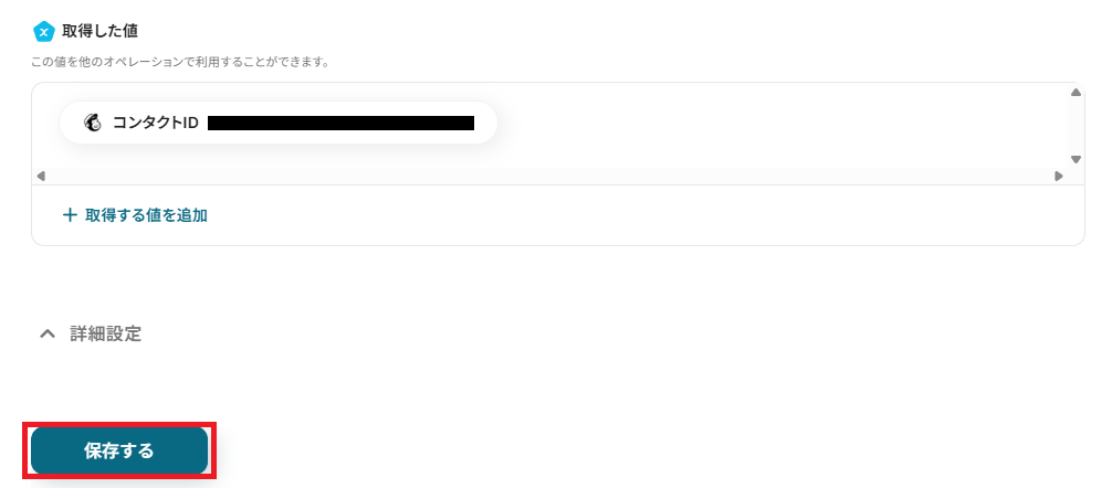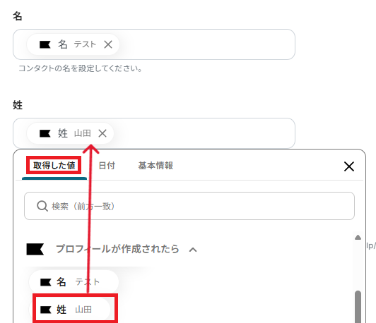 その他、連携したい項目を「取得した値」から設定しましょう。
