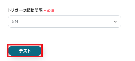 「トリガーの起動間隔」は5分、10分、15分、30分、60分の間隔で選択可能です。