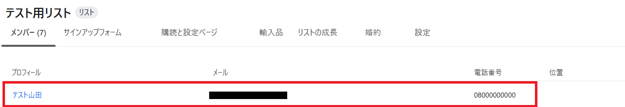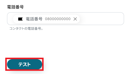 今回のテストでは「名前」と「電話番号」を設定しました。