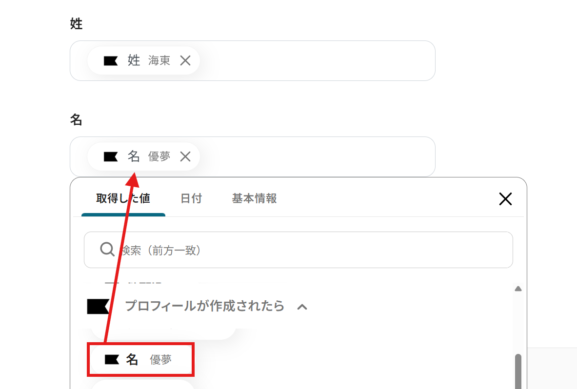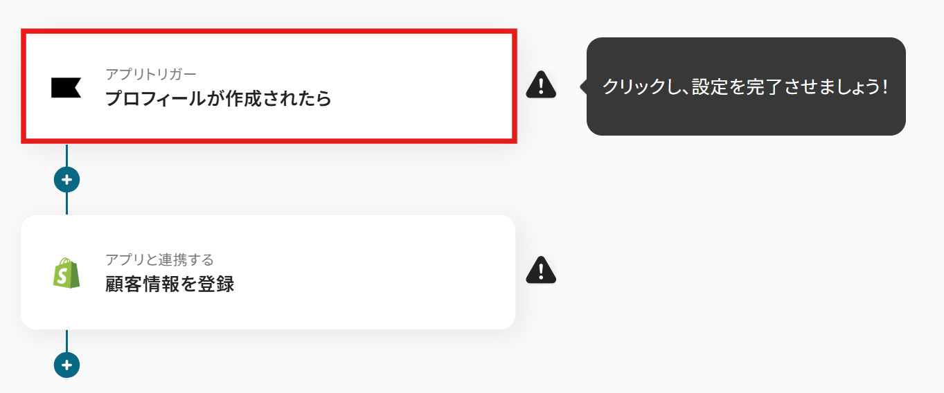 まず、一番上の「プロフィールが作成されたら」のアイコンをクリックします。