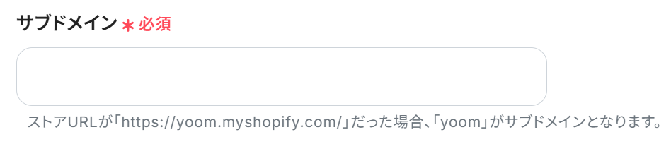3.サブドメインについては、URLの「yoomtest.myshopify.com」の場合、「yoomtest」部分がサブドメインとなります。