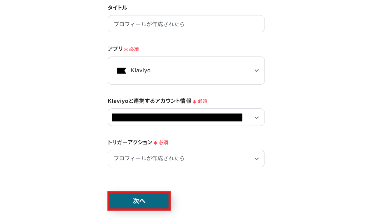 トリガーアクションには「プロフィールが作成されたら」を選びましょう。