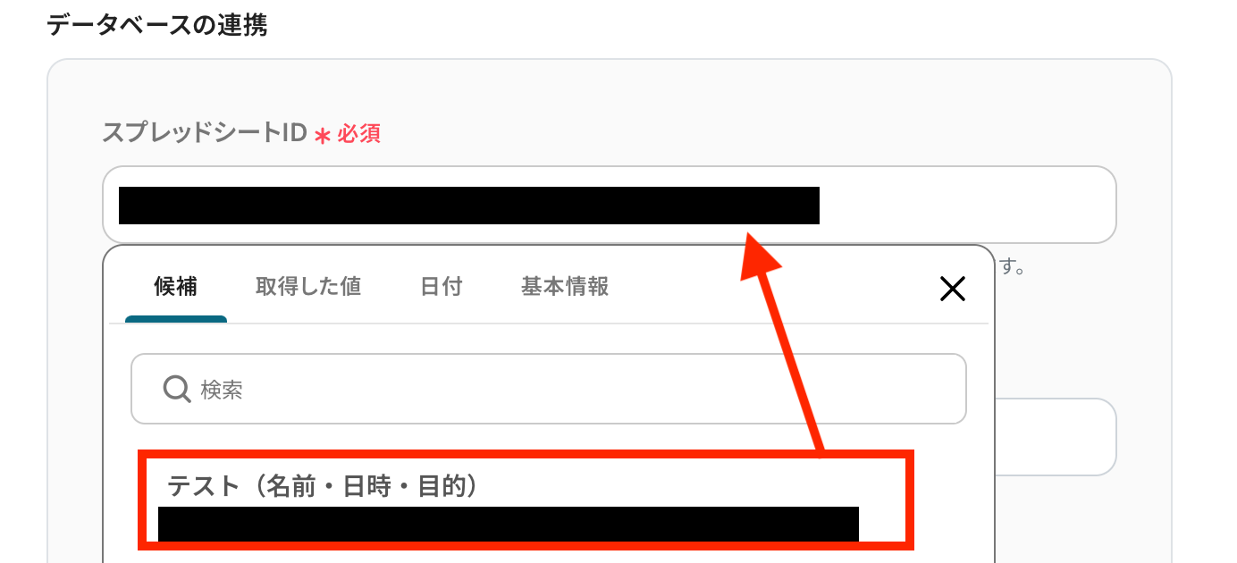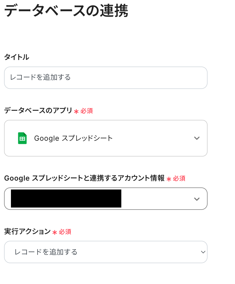 データベース連携の画面に遷移するので、必須項目を入力してください。