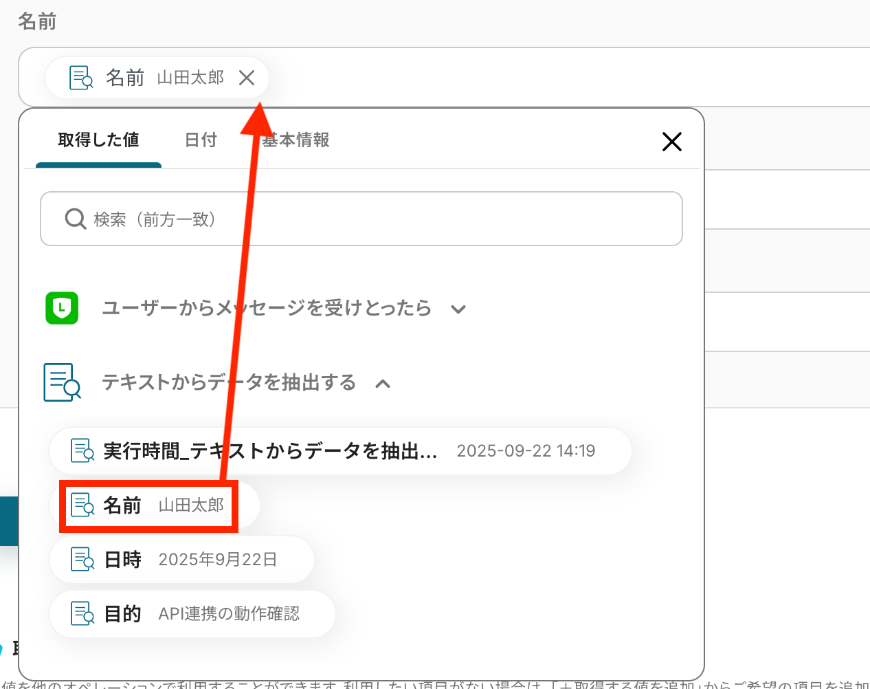 抽出したい項目には、対象のテキストから抽出したい項目を設定。