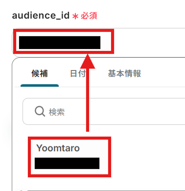 audience_idは、入力欄をクリックすると候補が表示されますので、選択肢の中から選びます。