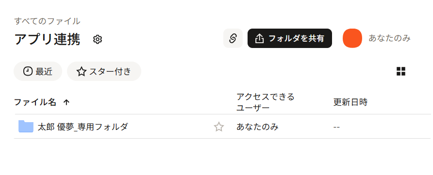 フォルダ作成時に取得したフォルダ名を指定することで、作成したフォルダにテンプレートファイルなどを自動保存できます。