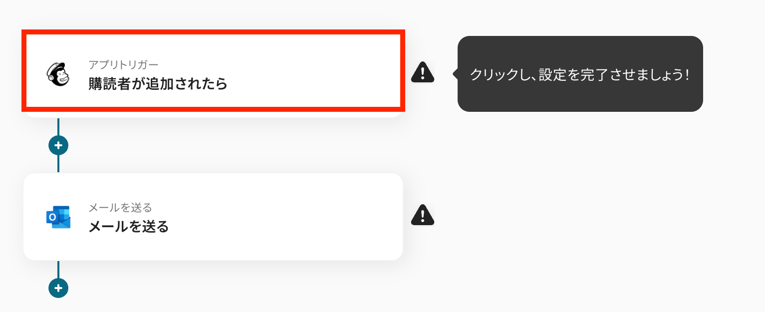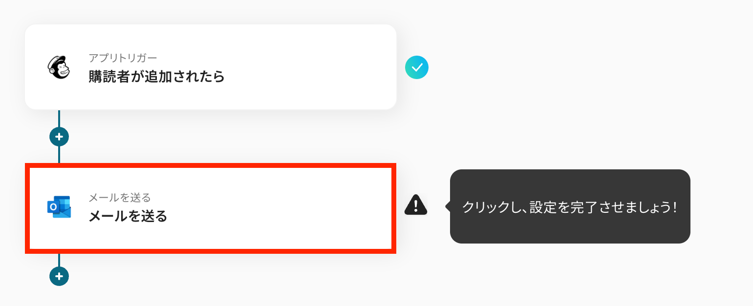 このワークフローを活用すれば、MailchimpとOutlookを連携させ、購読者の追加をきっかけにOutlookからのメール送信を自動化できるため、こうした定型業務を効率化できます。