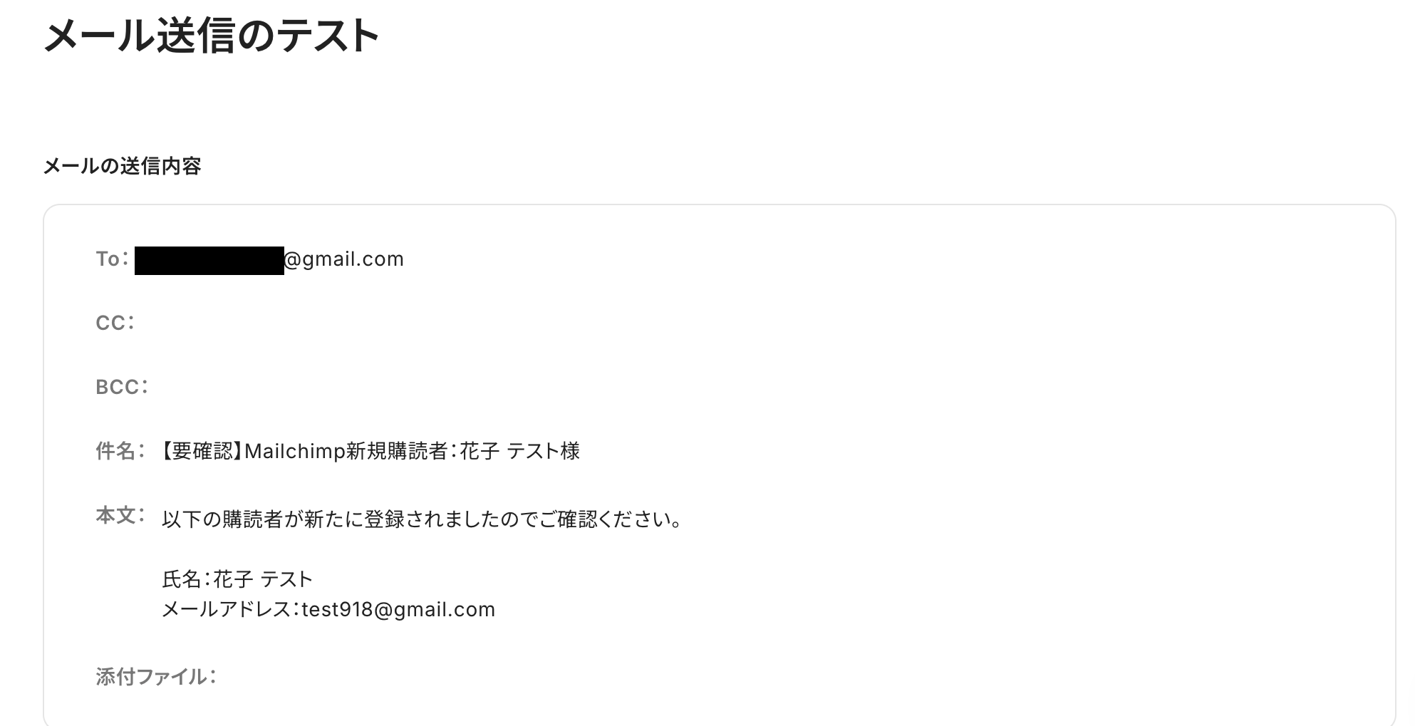※テストを行うと、設定しているアドレスにメールが送信される点にご注意ください。