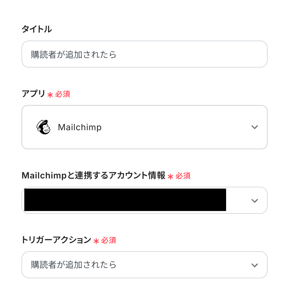 - アプリトリガー(Mailchimp)を開く