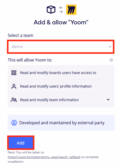 連携させたいチームを選んで「Add again」をクリックしましょう。