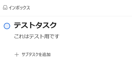 アプリトリガーとして設定されている「特定のデータベースのページが作成・更新されたら」の条件を満たすために、テスト用にデータベース内にタスクを入力しておきます。