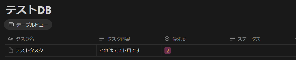 今回は例として、以下のようなデータベースにタスクを入力してみました。