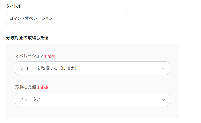 ここでは、先ほどNotionのレコードから取得した「ステータス」の情報を使ってみます。