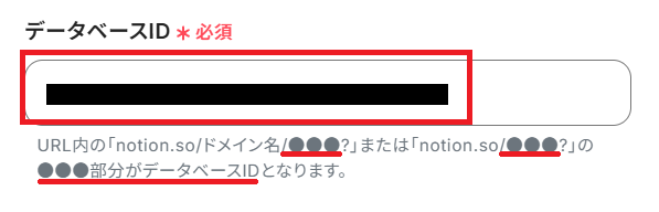 アプリトリガーの対象となる、NotionのデータベースIDを設定しましょう。直接Notionの該当ページにアクセスして、URLからIDを取得します。
