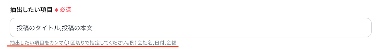 なお、各項目はボックスをクリックして表示される候補(先ほど取得したアウトプット)から選択可能です。