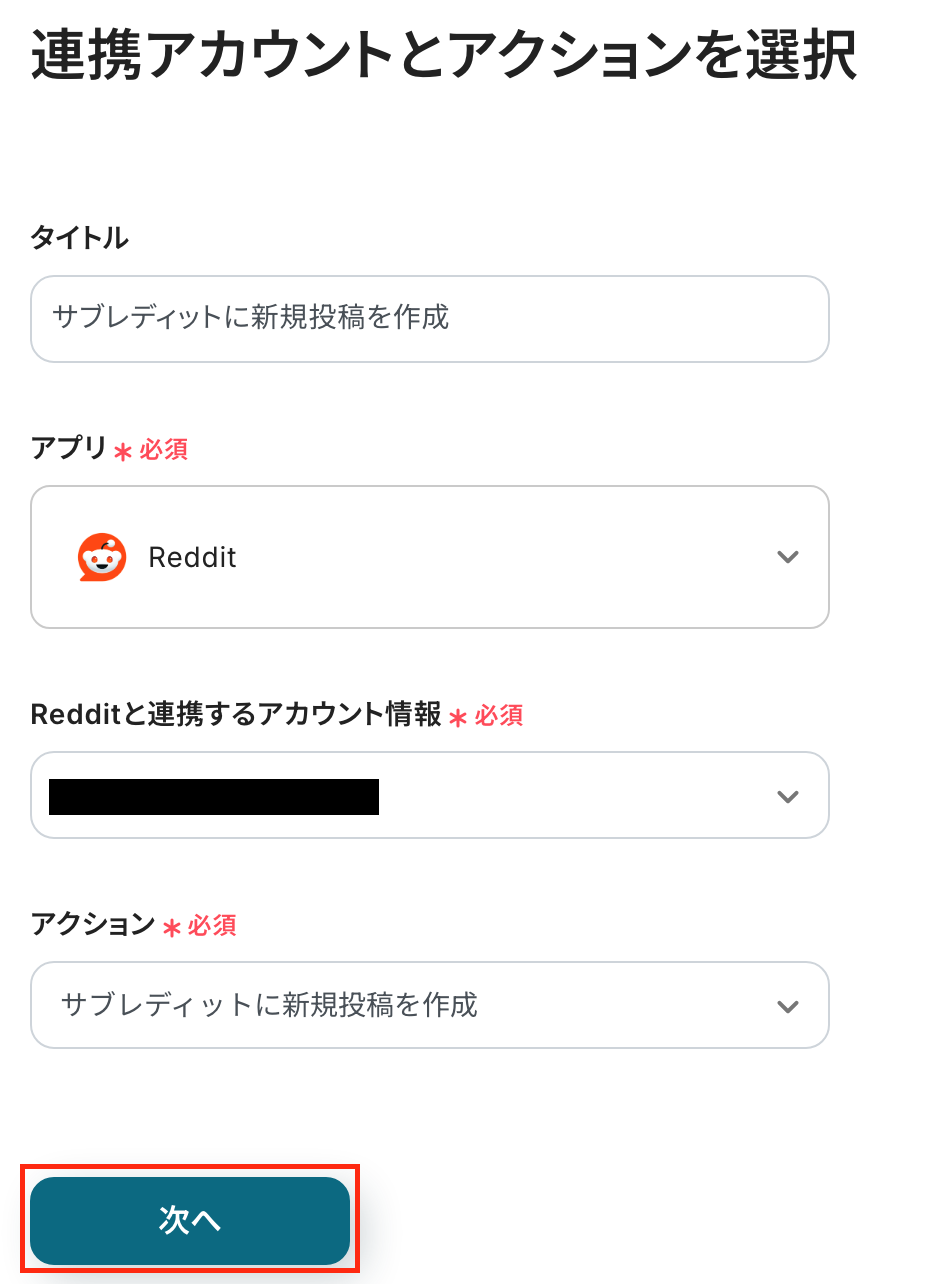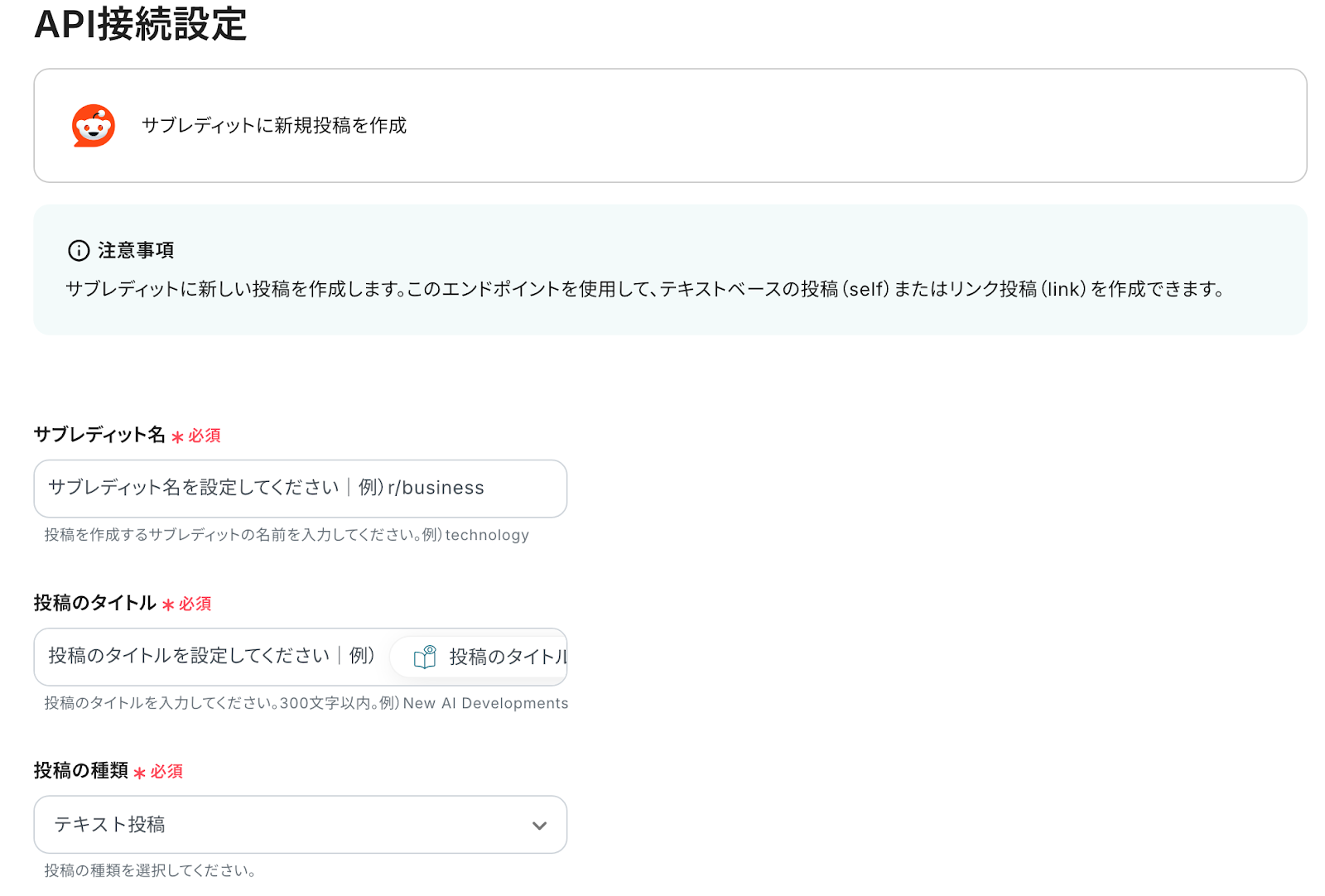「サブレディット名」は、入力欄下の注釈を参考にして入力してください。