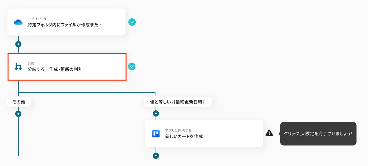 二つ目のオペレーションにある、「分岐する|作成・更新の判別」をクリックしてください。