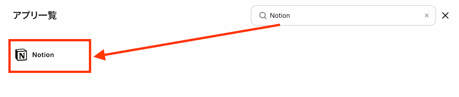 同様に、右上にある検索ボックスに「Notion」と入力して、表示されたNotionのアイコンをクリックします。