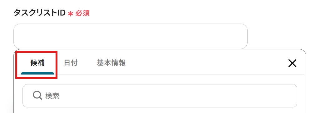 タスクリストID:入力欄をクリックし、候補の中から選択しましょう。