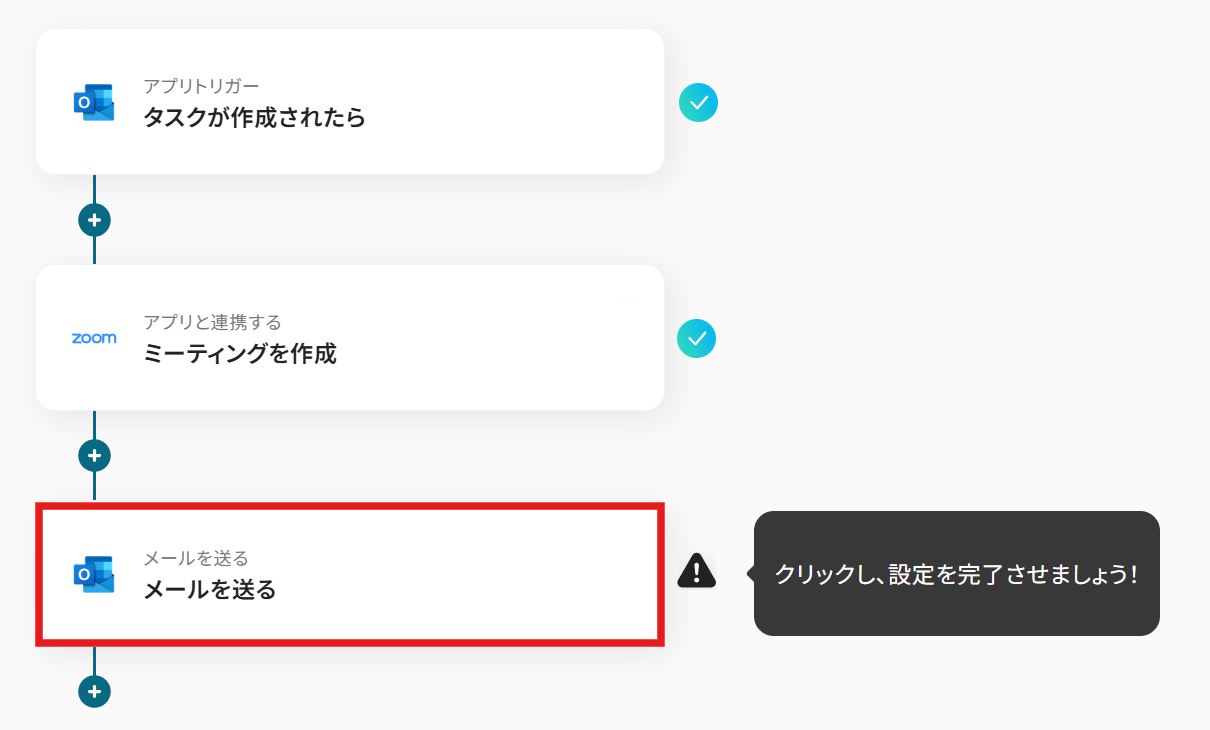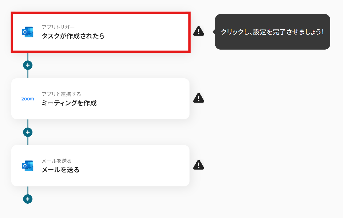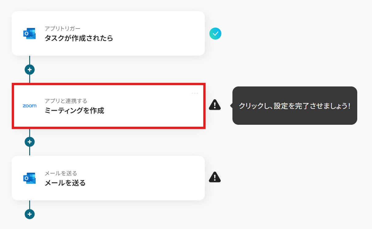 例えば、Outlookでタスクを作成した際に、その情報をもとにZoomミーティングを自動で作成するといった連携が実現できます。