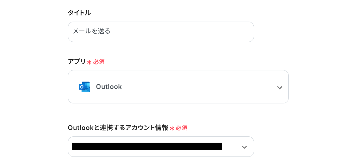 Outlookと連携するアカウント情報はプルダウンから選択します。