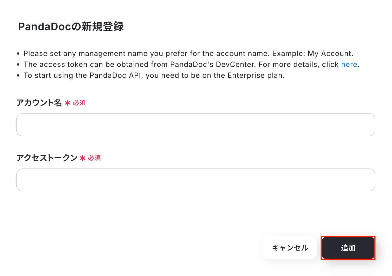 ※アクセストークンはPandaDocのDev Centerから取得できます。