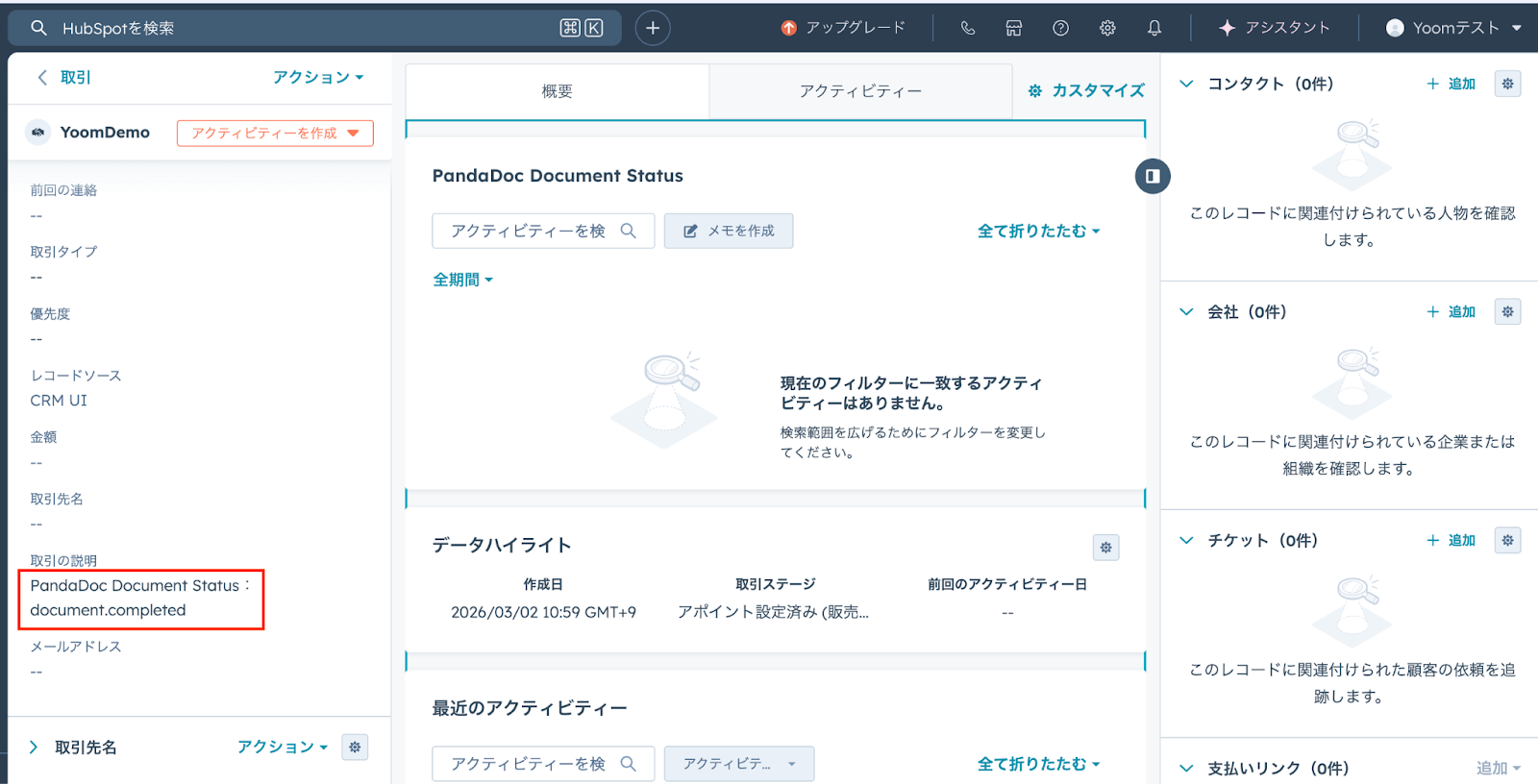 PandaDocでDocumentのステータスが変更されたら、HubSpotの取引も更新する