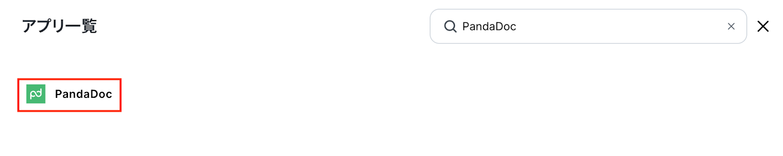 新規接続をクリックしたあと、アプリのメニュー一覧が表示されるのでPandaDocと検索し、対象アプリをクリックしてください。