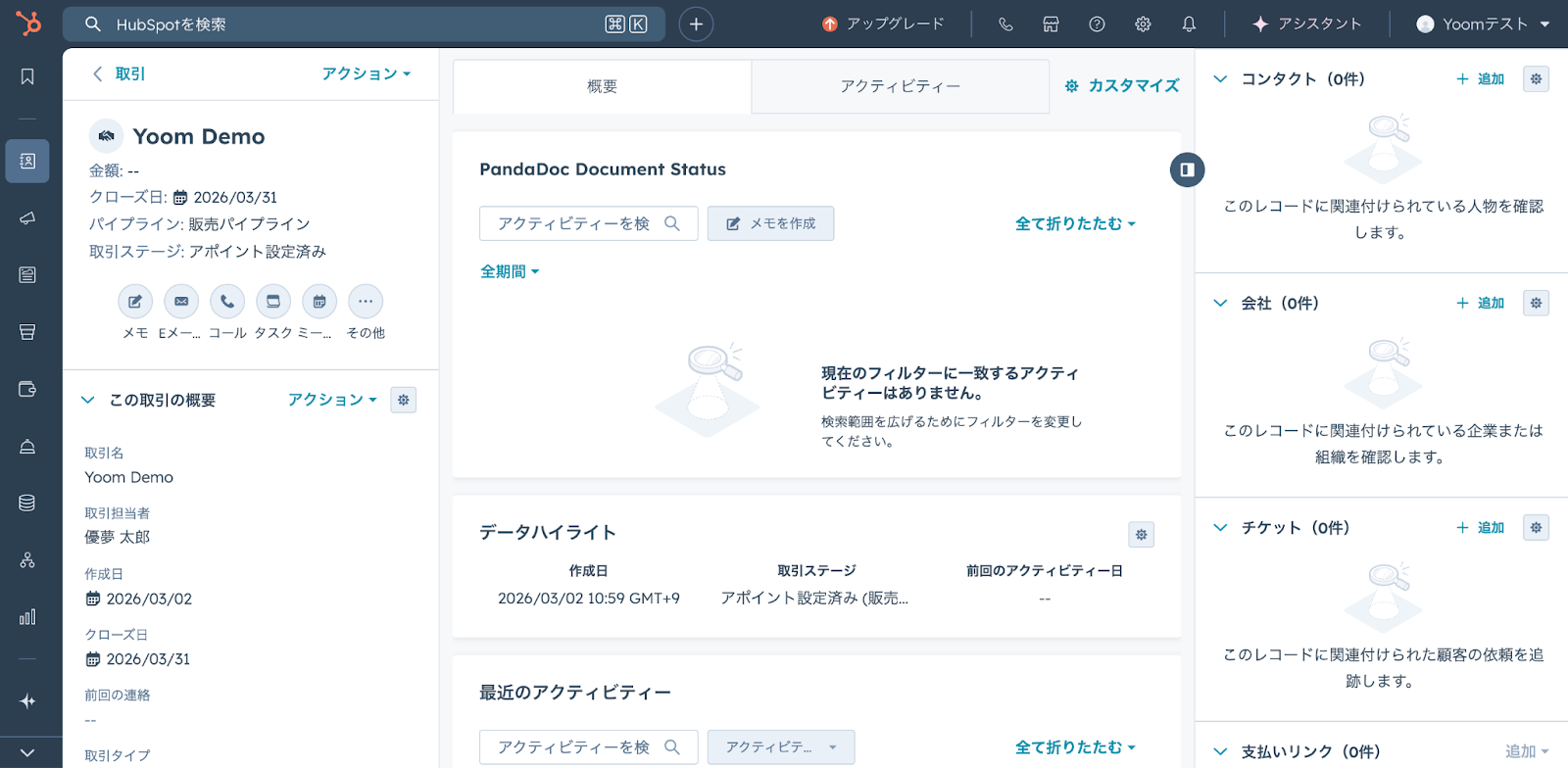 YoomにはPandaDocとHubSpotを連携するためのテンプレートが用意されています。
