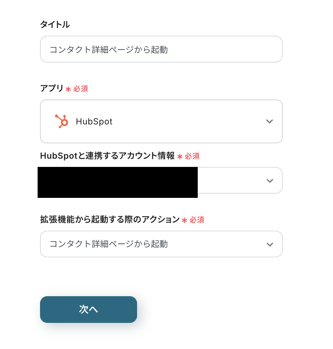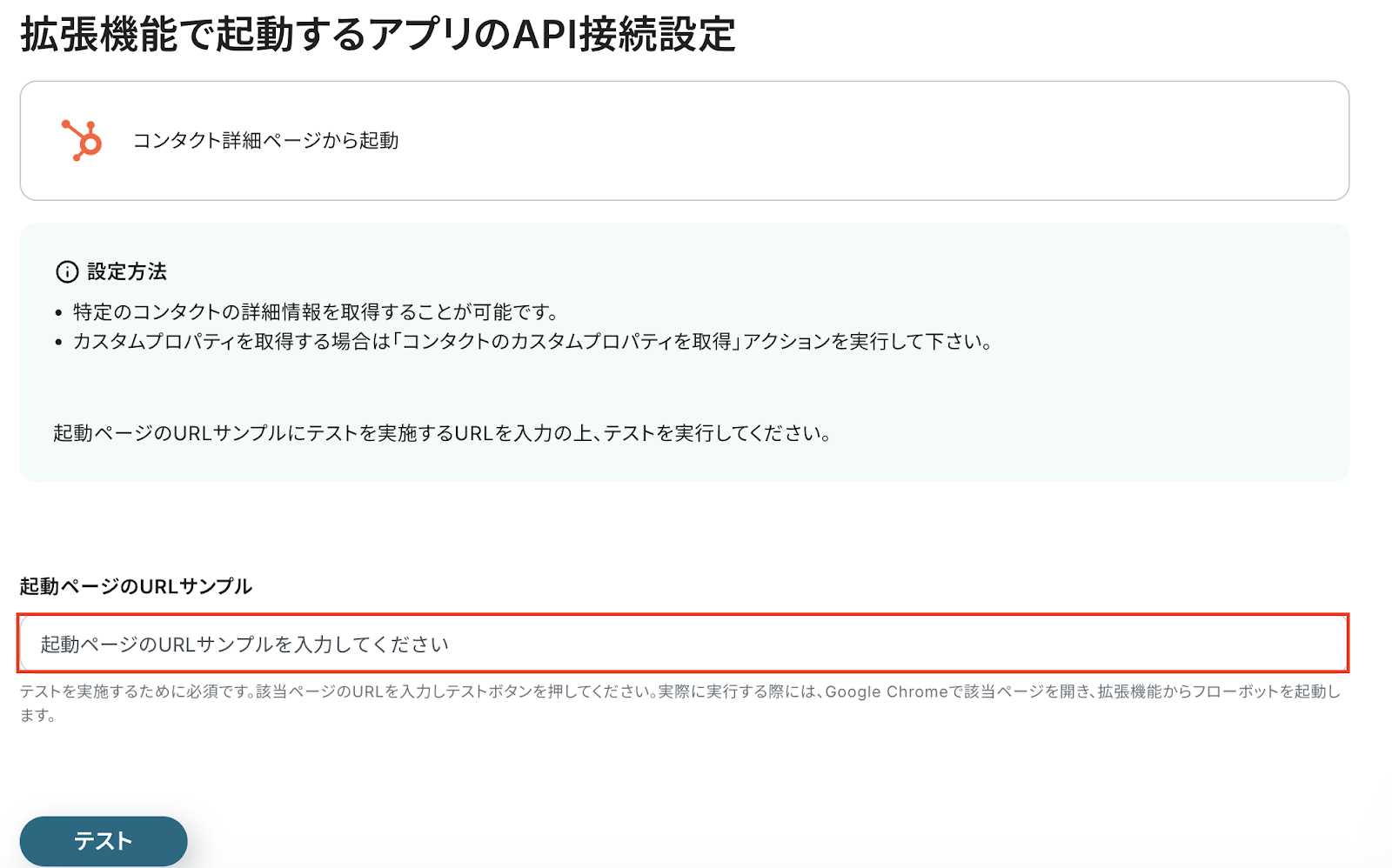 - 拡張機能から起動する際のアクションは「コンタクト詳細ページから起動」が選択されています。