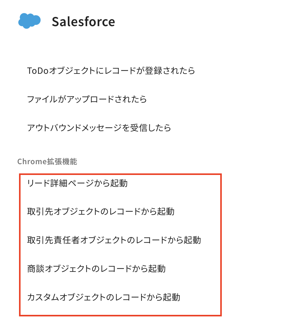 A:はい。例えばSalesforceのトリガーを設定する際にChrome拡張機能を選択することで実現可能になります。