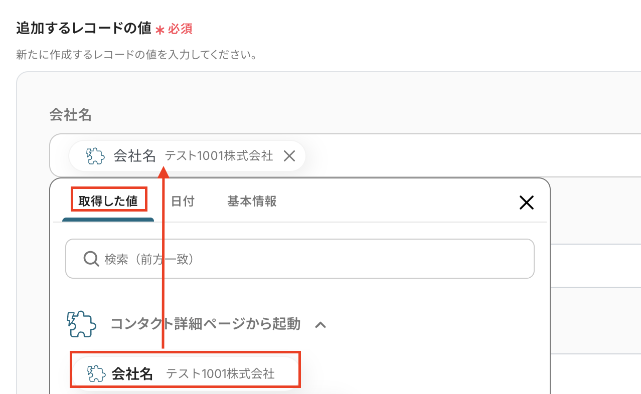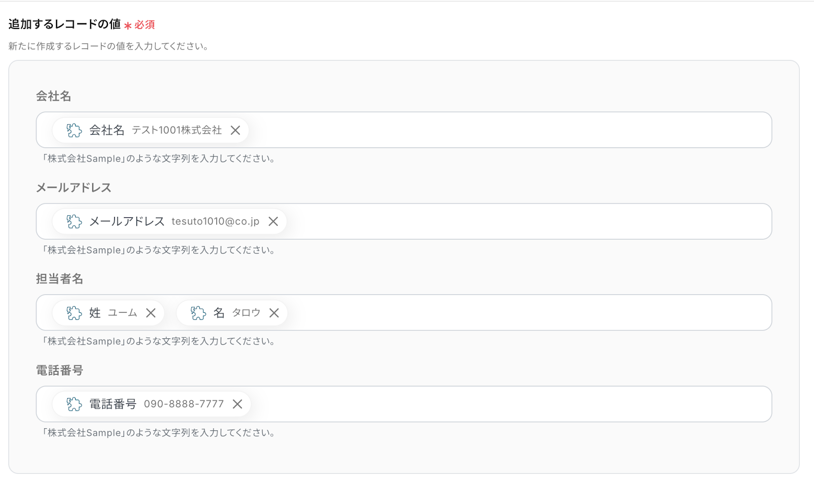 各項目は添付画像のように、トリガーで取得した値から選択しましょう。