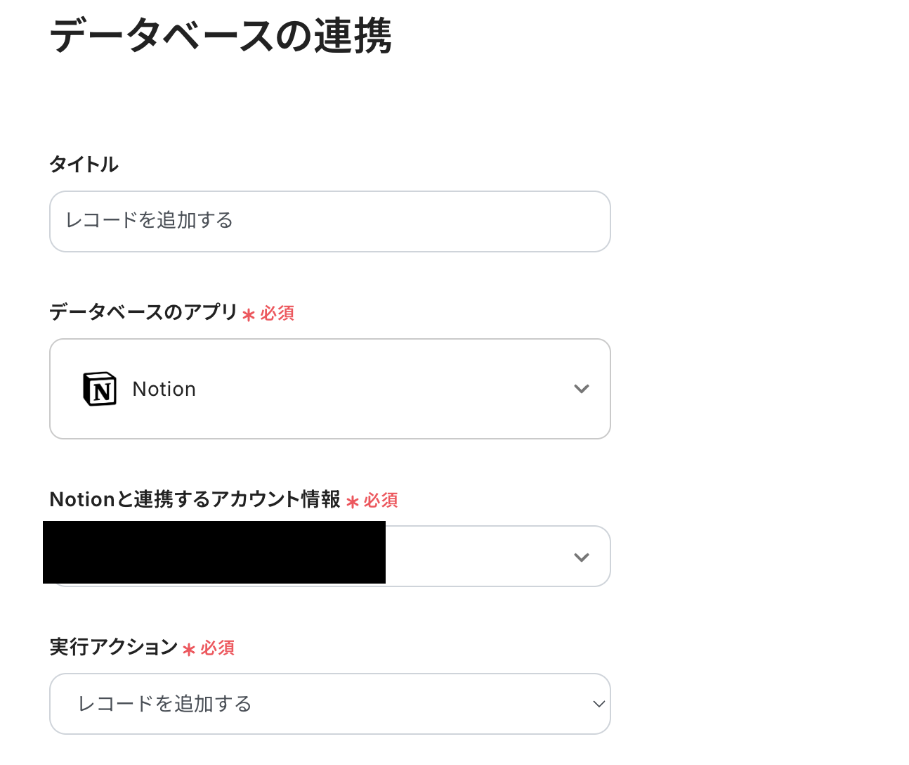 ステップ4:Notionのアクションを設定しよう(レコードを追加する)