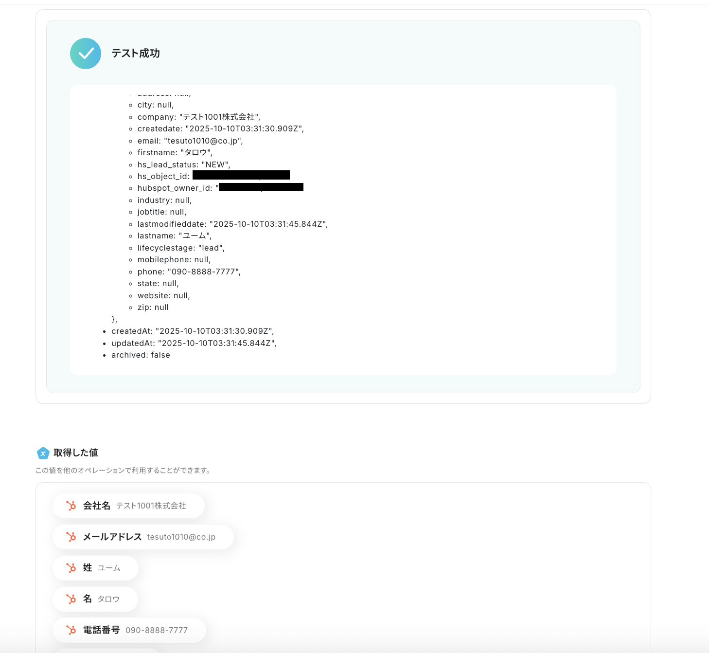 HubSpotから拡張機能トリガーを使用し、Notionにコンタクトを追加する