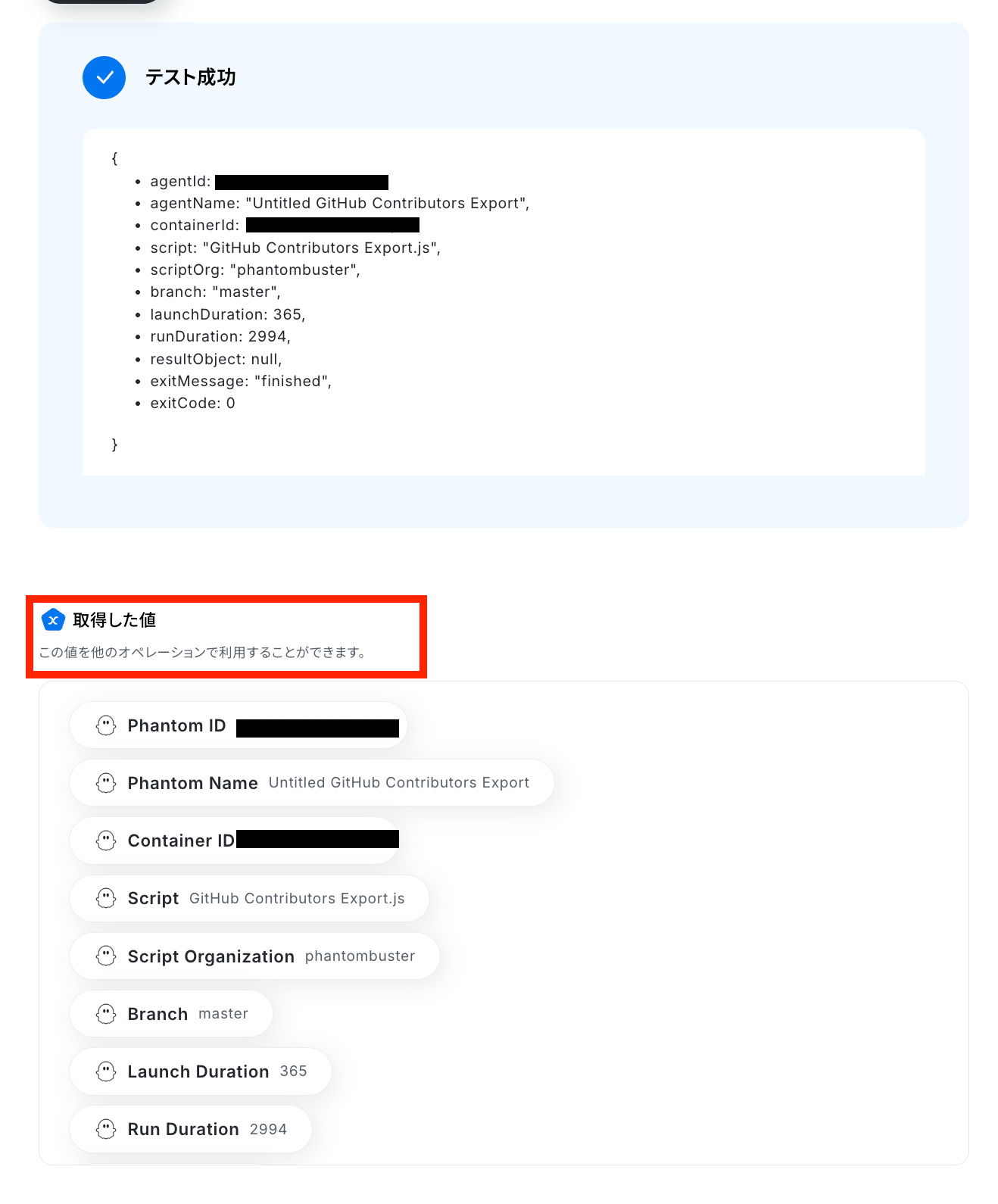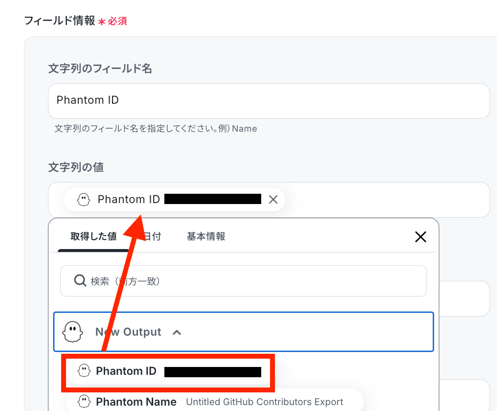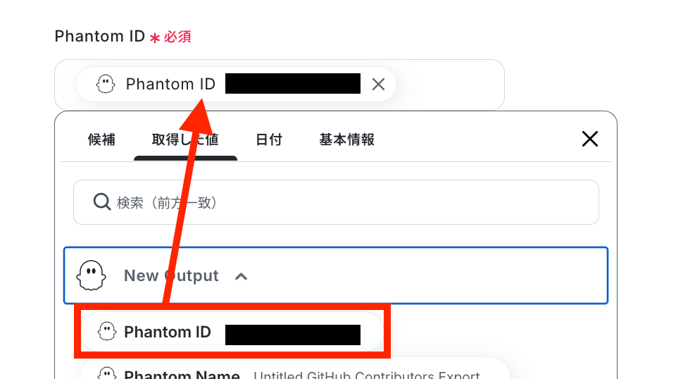 Phantom IDを取得した値から選択します。